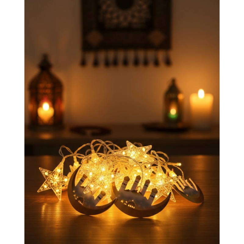 Ramazan süslemelerinde hem es hem de tasarruflu bir çözüm arayanlar için ideal olan bu LED ışık, A++ enerji verimliliği ile dikkat çeker. 3 metre uzunluğu sayesinde geniş alanlarda rahatlıkla kullanılabilir. Balkon korkuluklarında kullanıldığında dış mekâna hoş bir Ramazan dokunuşu kazandırırken, perde ve pencerelerde iç mekâna sıcak bir atmosfer katar. Ev içi kullanım için tasarlanmış olup iftar sofralarının ve sahur ortamlarının vazgeçilmez dekoratif unsurlarından biri olur. Hilal ve yıldız teması Ramazan ayının manevi havasını yansıtır.