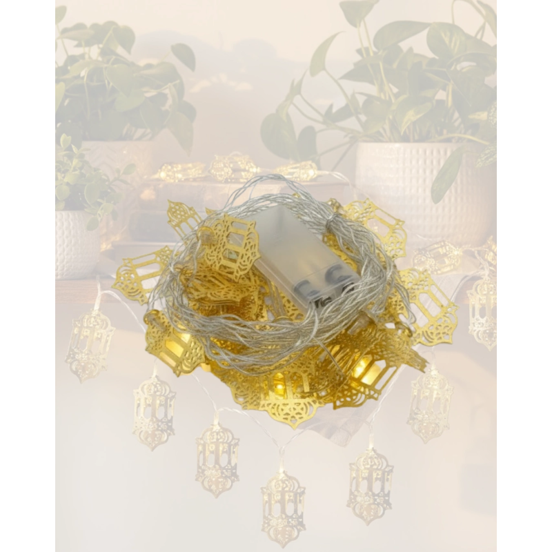 Ramazan Işıkları Pilli Altın Fener Tasarımlı Dekoratif Led Aydınlatma