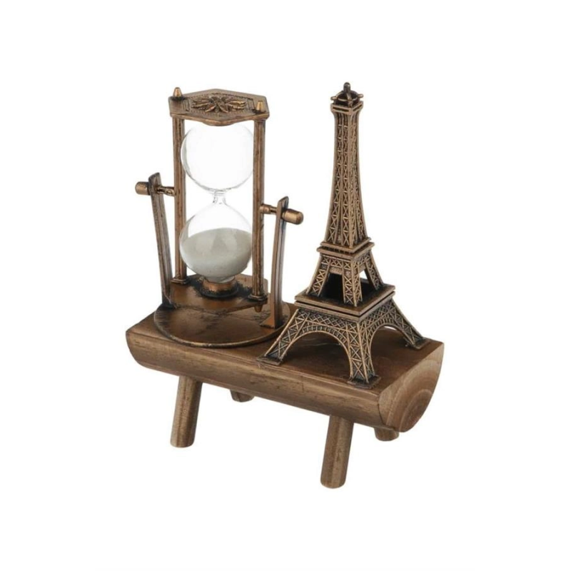 Retro Eyfel Kulesi Ve Kum Saati Dekoratif Ahşap Görünümlü Masa Biblosu