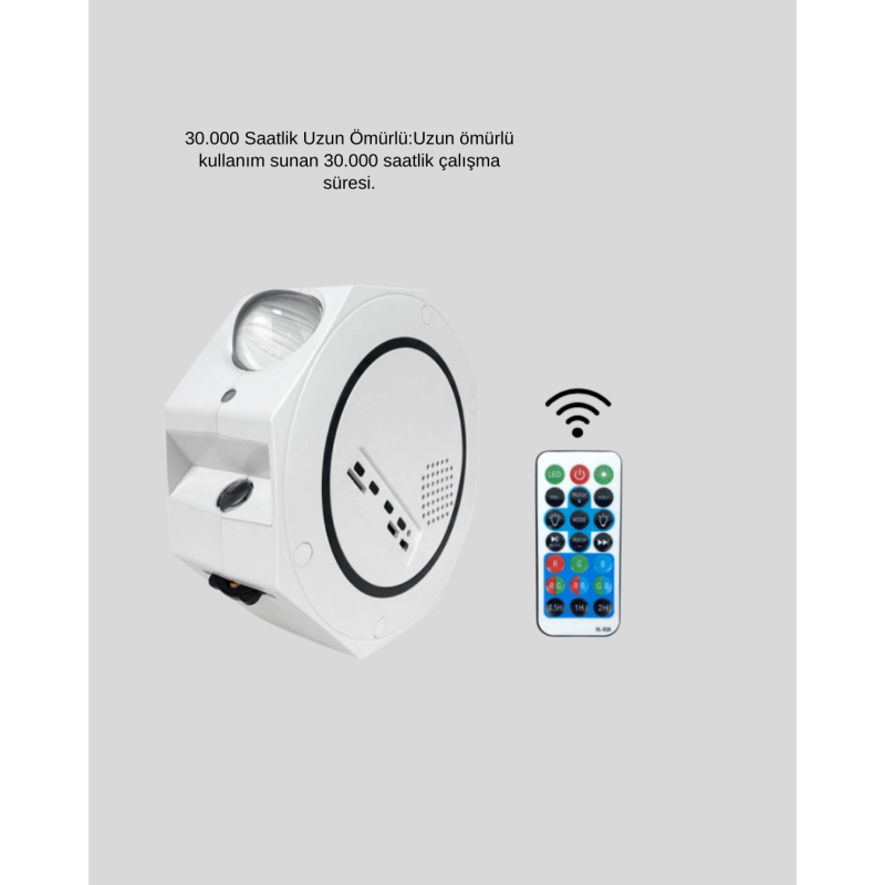 Yıldızlı gökyüzü projeksiyon lambası, romantik ve huzurlu bir atmosfer oluşturmak isteyenler için tasarlanmıştır. 360° döndürülebilir yapısı ile ışık açısı dilediğiniz gibi ayarlanabilir.Farklı aydınlatma modları, ortamın ruh halini değiştirmenize yardımcı olur. Uzaktan kumanda ve zamanlayıcı fonksiyonu, pratik kullanım sunar. Taşınabilir tasarımı sayesinde her ortamda rahatlıkla kullanılabilir.