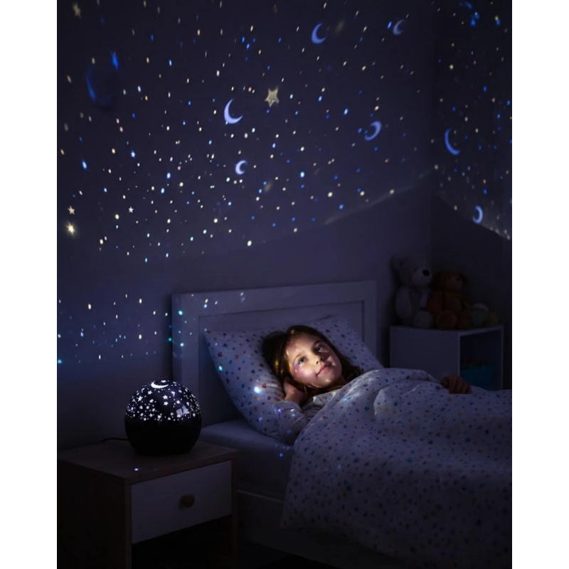 Yıldız projektör gece lambası, fişe takılarak çalışan yapısıyla güvenli ve sürekli kullanım sunar. Elektrik bağlantısı sayesinde ışık gücü sabit kalır ve uzun süreli kullanımlarda performans kaybı yaşanmaz. Özellikle çocuk odalarında gece lambası olarak tercih edilebilir.Tavan ve duvarlara yansıyan yıldız desenleri, ortama sakinleştirici bir hava katar. Parlaklık ve hız ayarları sayesinde istenilen atmosfer kolayca oluşturulabilir. Dahili hoparlörü sayesinde müzik veya rahatlatıcı sesler eşliğinde kullanılabilir.Sesle tepki veren ışık modu, müziğin temposuna uyum sağlayarak görsel bir şölen oluşturur. 30 dakikalık otomatik kapanma özelliği ise gece kullanımında pratiklik sağlar. Şık ve kompakt tasarımı sayesinde her ortama uyum sağlar.