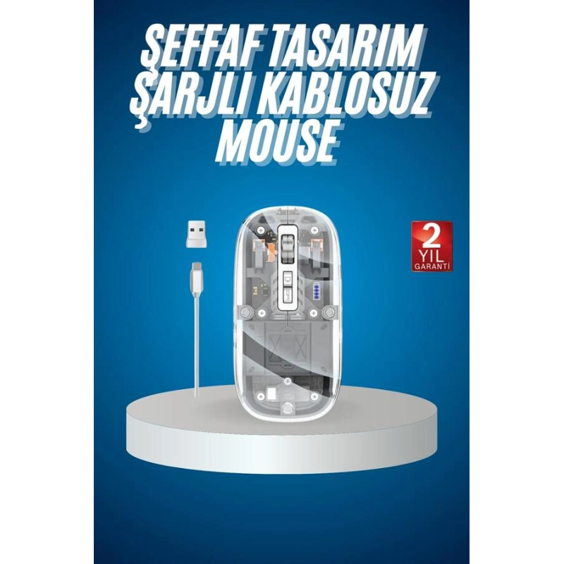 Sessiz Tıklama Çift Modlu Bluetooth Ve Alıcı Şeffaf Mouse Fare