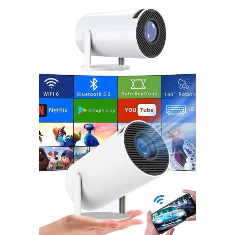 Taşınabilir Mini Projektör – Eğlenceyi Her Yere Taşıyın!Kompakt tasarımı sayesinde evde, ofiste veya açık havada rahatça kullanabileceğiniz mini projektör, 720P doğal çözünürlüğü ve 120 ANSI lümen parlaklığı ile canlı ve net görüntüler sunar. Dahili Android 11.0 işletim sistemi ile Netflix, YouTube ve diğer uygulamalara doğrudan erişebilirsiniz. 40-130 inç arasında ayarlanabilir ekran boyutu ile sinema keyfini geniş bir ekrana taşıyabilirsiniz. Otomatik keystone düzeltme sayesinde açıyı manuel ayarlama derdi olmadan mükemmel görüntü elde edin. HDMI, USB, Wi-Fi ve ses çıkışı bağlantıları sayesinde farklı cihazlarla uyumludur. Dahili 3W hoparlörü ile ek ses sistemine ihtiyaç duymadan güçlü ve net ses deneyimi yaşayın. Ev sineması, sunumlar, oyun ve eğitim gibi birçok kullanım alanına sahiptir.