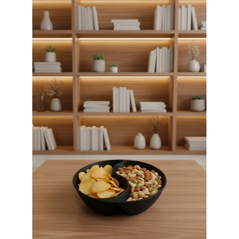 Siyah çerezlik kase seti, modern ve güçlü rengiyle salon ve masa üstü sunumlarına şık bir görünüm kazandırır. 3x12 cm ölçüsündeki kaseler, çerez, kuruyemiş ve atıştırmalıklar için ideal boyuttadır. 4 adetlik set içeriği sayesinde hem günlük kullanımda hem de misafir ağırlarken pratik bir çözüm sunar.Bölmeli tasarımı, farklı çerez çeşitlerini aynı kase içinde düzenli şekilde sunmanıza yardımcı olur. Çerezlerin birbirine karışmasını önleyerek masa üzerinde düzenli ve es bir sunum sağlar. Siyah rengi, özellikle loş ama aydınlık salon ortamlarında zarif ve modern bir kontrast oluşturur.Salon masası, sehpa veya TV ünitesi üzerinde rahatlıkla kullanılabilir. Hem işlevsel hem de dekoratif bir çerezlik seti arayanlar için ideal bir tercihtir.
