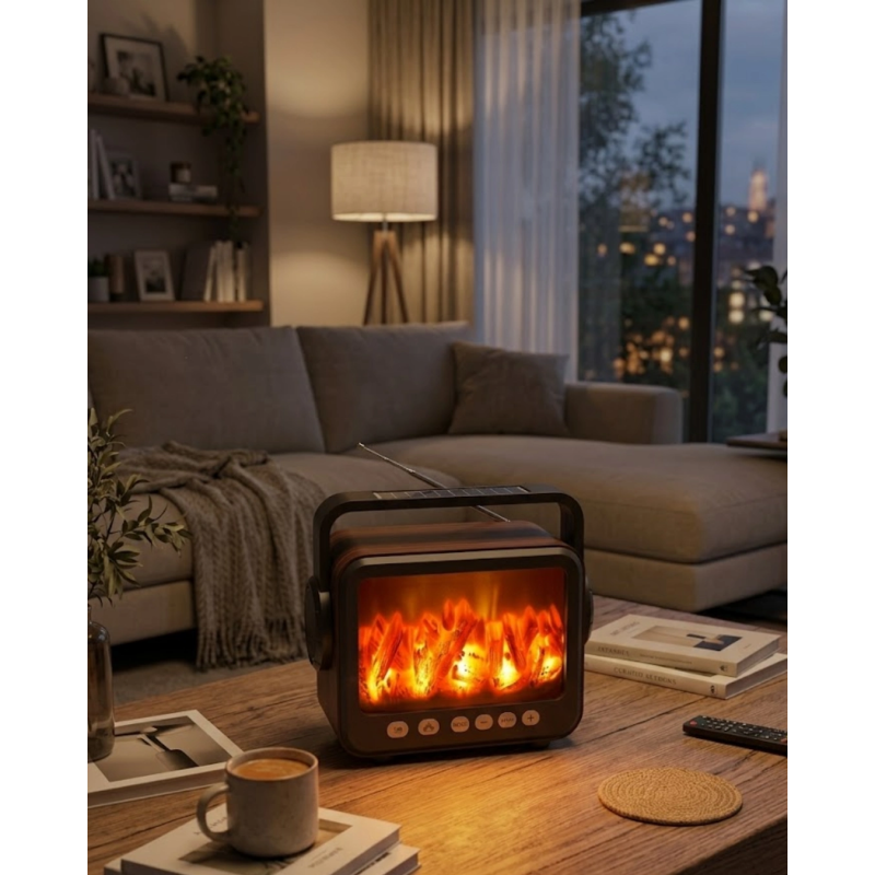 Şömine efektli bluetooth hoparlör, dekoratif tasarımı ve çok fonksiyonlu müzik özellikleri ile hem es bir ev dekorasyonu ürünü hem de güçlü bir ses sistemi olarak kullanılabilen pratik bir cihazdır. Gerçekçi şömine alevi görünümüne sahip LED ışık sistemi sayesinde bulunduğu ortama sıcak ve hoş bir atmosfer kazandırır. Özellikle salon, yatak odası, çalışma odası veya ofis ortamlarında dekoratif bir obje olarak da dikkat çeker.Bluetooth bağlantı özelliği sayesinde akıllı telefon, tablet ve bluetooth destekli diğer cihazlarla kolayca eşleşerek kablosuz müzik dinleme imkanı sunar. Ayrıca USB ve TF kart girişleri sayesinde müzik dosyalarınızı doğrudan cihaz üzerinden oynatabilirsiniz. Bu sayede farklı kaynaklardan müzik dinlemek oldukça kolay hale gelir.FM, AM ve SW radyo frekanslarını destekleyen radyo özelliği ile sevdiğiniz radyo kanallarını dinleyebilirsiniz. Güçlü hoparlör sistemi sayesinde net ve kaliteli ses performansı sunar. Subwoofer destekli yapısı sayesinde daha güçlü ve derin bass deneyimi sağlar.Taşınabilir yapısı sayesinde ev içinde farklı alanlarda kolayca kullanılabilir. LED şömine efekti sayesinde hem gece hem gündüz dekoratif bir görünüm sunar. Modern teknoloji ile nostaljik tasarımın birleştiği bu cihaz, hem müzik keyfi hem de dekoratif kullanım için ideal bir üründür.