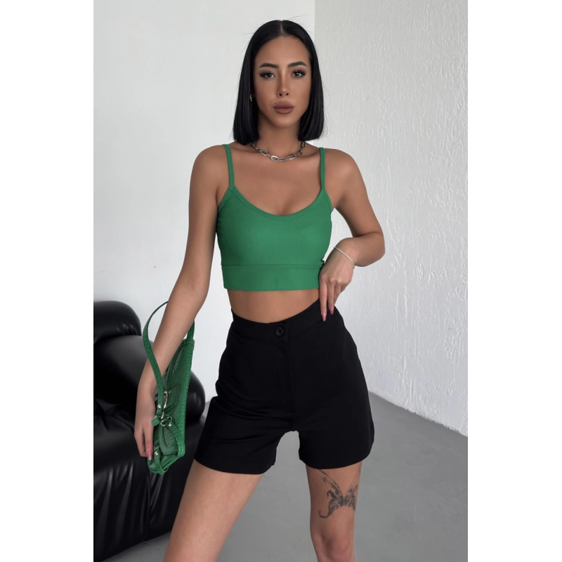 Tarz Ve Rahatlığı Bir Arada Sunan Yüksek Bel Esnek Likralı Krep Şort Siyah