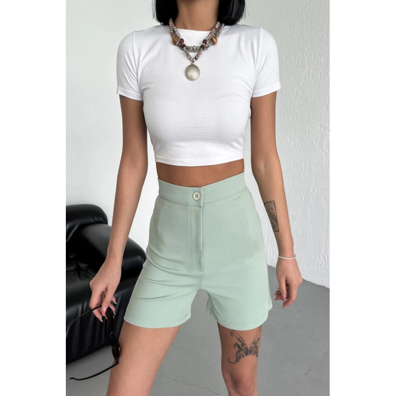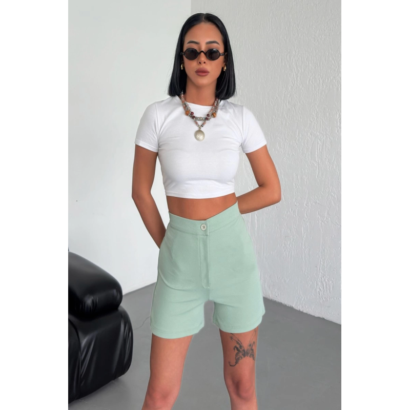 Tarz Ve Rahatlığı Bir Arada Sunan Yüksek Bel Esnek Likralı Krep Şort Su Yeşili