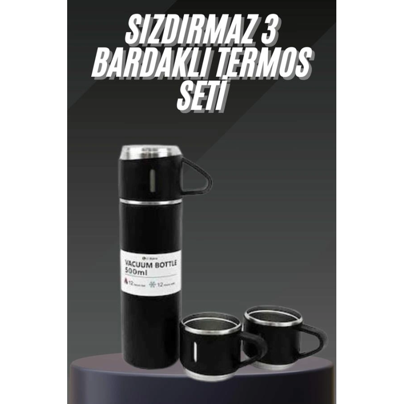 Termos Seti Paslanmaz Çelik 3 Bardaklı Vakumlu Termos Set 500 Ml 12 Saate Kadar Isı Koruma