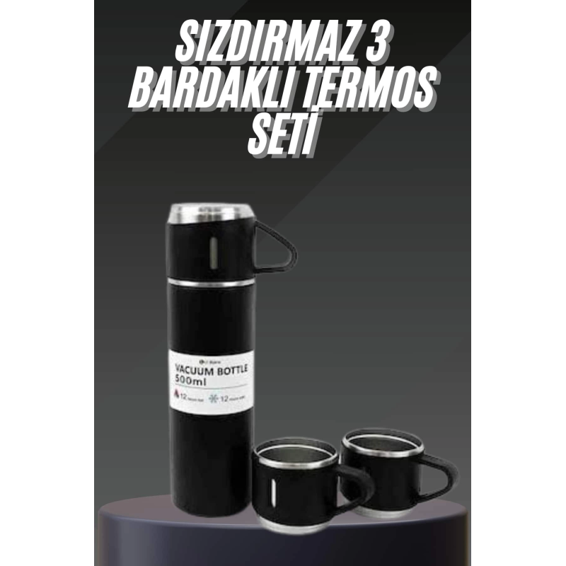 Termos Seti Paslanmaz Çelik 3 Bardaklı Vakumlu Termos Set 500 Ml 12 Saate Kadar Isı Koruma