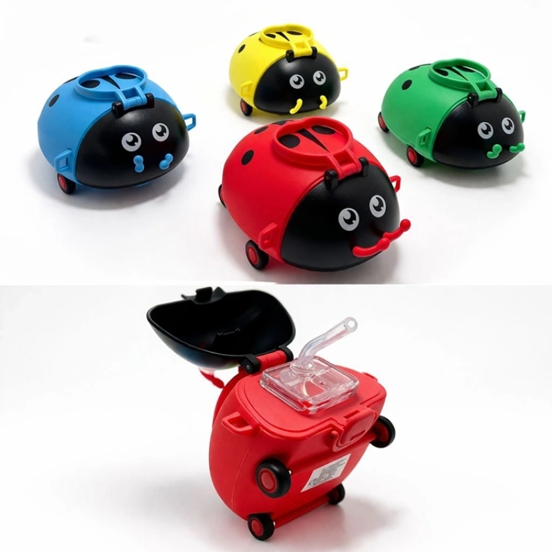 Uğur Böceği Tasarımlı Tekerlekli Çocuk Su Matarası Pipetli Ve Askılı Okul Suluğu Alk4656 Ürün Ölçüleri 18*12 Cm