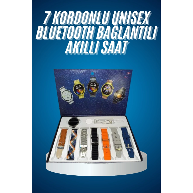 Unısex Yuvarlak Ekranlı 7 Kordonlu Akıllı Saat Gps Destekli Çoklu Kordon Seçeneği