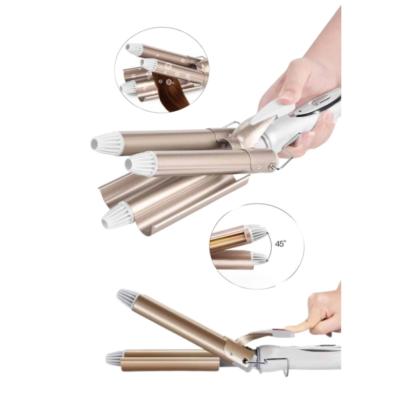 Cihazın ergonomik tasarımı kullanıcı güvenliği ve konforunu ön planda tutar. Kaymaz tutma sapı, ısıya dayanıklı uç kısmı ve ısı yalıtımlı destek braketi sayesinde kullanım sırasında ellerinizi ve yüzeyleri korur. Maşayı kullanmadığınız zamanlarda güvenle düz bir zemine yerleştirebilirsiniz. 110-240V geniş voltaj aralığı ile hem evde hem seyahatlerde rahatlıkla kullanılabilir. 30-50W güç tüketimiyle enerji açısından da verimli olan bu model; gold rengiyle şık bir görünüme sahiptir ve sadece 620 gram ağırlığındaki kompakt yapısıyla kolay taşınabilir. Profesyonel sonuçlar elde etmek isteyen herkes için vazgeçilmez bir saç şekillendirme aracıdır.