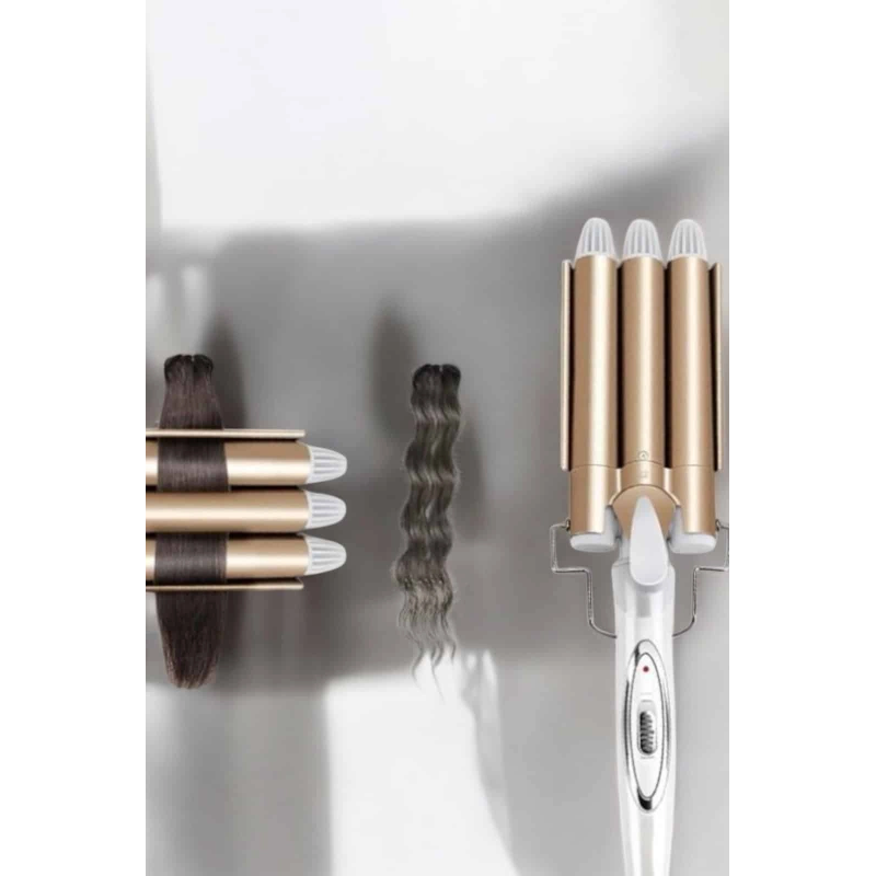 Üçlü saç maşası, profesyonel görünümlü, doğal ve dayanıklı bukleler oluşturmak için mükemmel bir araçtır. Turmalin seramik teknolojisini kullanarak saçınıza zarar vermeden büyük miktarlarda negatif iyon üretir ve bu sayede saçı nemlendirir, elektriklenmeyi önler. Böylece saçınız daha sağlıklı ve parlak görünürken, şekillendirdiğiniz bukleler de kalıcı hale gelir. 25 mm çapında 3 namlulu tasarımıyla, orta uzunluktaki ve uzun saçlarda mükemmel sonuçlar elde edebilirsiniz. PTC ısıtma elemanı sayesinde saç maşası yalnızca 30 saniye içinde 170°C'ye ulaşır, sıcaklık hızlıca ve eşit şekilde yayılır, böylece saçı nazikçe şekillendirirsiniz. 170°C ve 220°C arasında ayarlanabilir sıcaklık seçenekleri, farklı saç tiplerine uygun kullanım imkanı sunar. Ergonomik tasarıma sahip kaymaz tutamak ve haşlanma önleyici uçlar, kullanım esnasında güvenliği artırırken, istenmeyen yanma risklerini ortadan kaldırır. Ayrıca, ısı yalıtımlı ön braket, cihazı güvenle bırakabilmenizi sağlar. Üçlü saç maşası, kolay kullanım ve üstün performansı ile her zaman mükemmel bukleler oluşturmanızı sağlar.