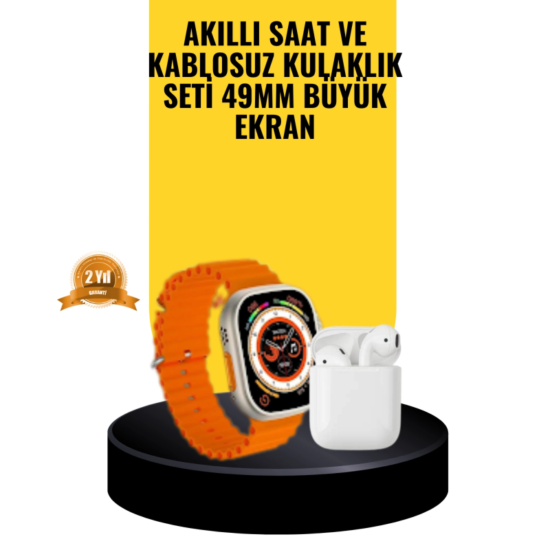 Watch 9 Max Akıllı Saat Sesli Görüşme Özellikli Kulaklık Seti, teknoloji ile konforu bir arada sunar. Günlük kullanımda ihtiyaç duyulan temel akıllı özellikleri, şık tasarımıyla birleştirerek kullanıcıya pratik bir deneyim sağlar. İş, spor ve sosyal yaşamda rahatlıkla kullanılabilir.Set içeriğinde bulunan iki adet kordon, farklı kullanım senaryolarına uyum sağlar. Kablosuz kulaklık ise görüşmelerinizi ve müzik keyfinizi özgürce yaşamanıza imkan tanır. Saat üzerinden yapılan sesli görüşmeler, iletişimi daha hızlı ve pratik hale getirir.Watch 9 Max; adım sayar, nabız sensörü ve uyku takibi gibi sağlık fonksiyonları ile günlük yaşamınızı takip etmenize yardımcı olur. Bildirim özelliği sayesinde gelen mesaj ve aramaları kaçırmadan görüntüleyebilirsiniz. Titreşimli uyarılar sessiz ortamlarda büyük avantaj sağlar.45 mm kasa çapı ve modern gümüş tasarımı, saatin es duruşunu güçlendirir. 300–400 mAh batarya kapasitesi sayesinde gün boyu kesintisiz kullanım mümkündür. Kullanımı kolay arayüzü ile her yaştan kullanıcıya hitap eder.Watch 9 Max Akıllı Saat Kulaklık Seti, fonksiyonel özellikleri ve zengin içeriğiyle akıllı saat deneyimini daha erişilebilir ve keyifli hale getirir.