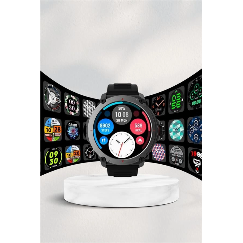 Dayanıklı tasarımı, günlük kullanım ve zorlu koşullar için özel olarak geliştirilmiştir. Fiberglas çerçeve ve silikon arka kaplama, hem hafif hem de dayanıklı bir yapı sunarak konforlu bir kullanım sağlar. 5ATM suya dayanıklılık özelliği ile yüzme aktivitelerinde ve zorlu hava koşullarında bile güvenle kullanabilirsiniz. Saatinizi yağmurda, duşta veya havuzda çıkarma gereği duymadan günlük hayatınıza devam edebilirsiniz. Uzun pil ömrü, bu saati rakiplerinden ayıran en büyük avantajlardan biridir. Normal kullanımda 21 gün, enerji tasarrufu modunda ise 45 güne kadar kullanım imkanı sunarak, sık sık şarj etme derdinden kurtulmanızı sağlar.