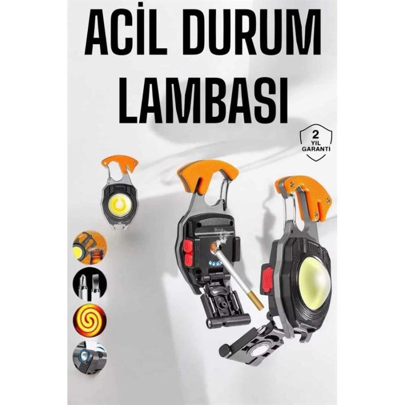 Yeni Nesil Kamp Feneri Çok Fonksiyonlu Fener Anahtarlık Usb Çakmaklı Cam Kırıcı Kemer Kesici Açacak