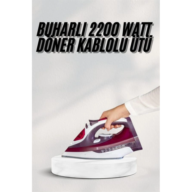 Yeni Nesil Kırmızı Buharlı Ütü 2200 Watt Seramik Tabanlı Yüksek Buhar Gücü