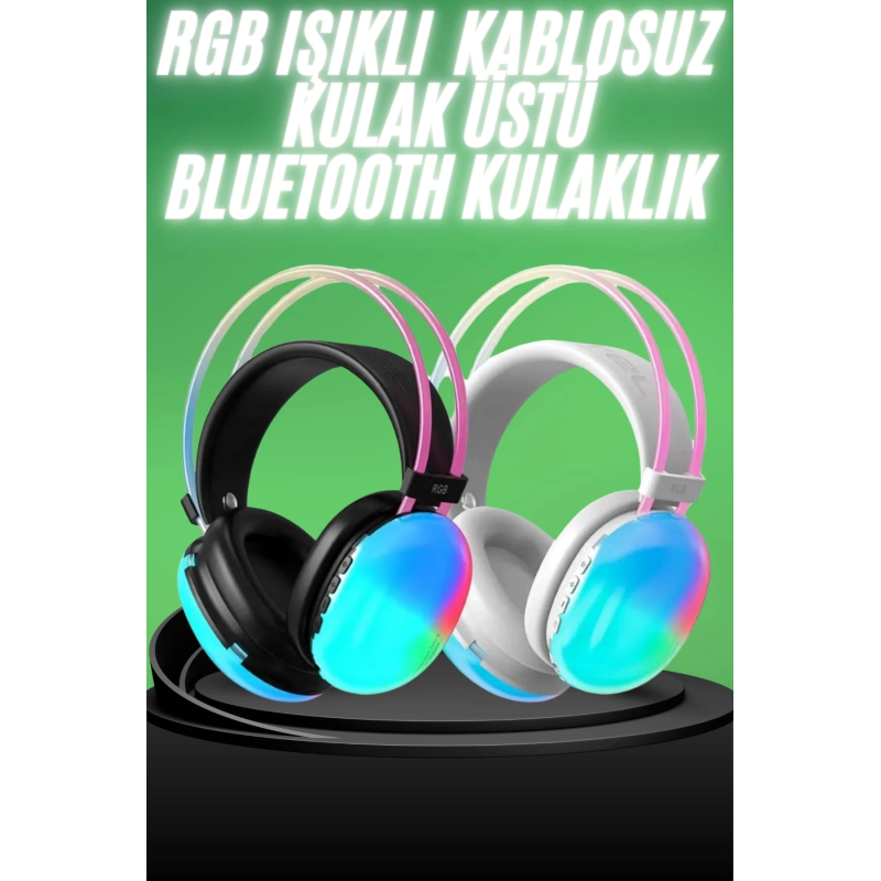 Yeni Nesil Kulak Üstü Kablosuz Uzun Ömürlü Rgb Işıklı Bluetooth Kulaklık
