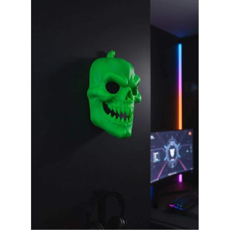 Yeşil Korku Temalı Maske, yüksek görsellik sunan detaylı yapısıyla dekorasyon dünyasında öne çıkan özel bir tamamlayıcı üründür. Neon yeşili tonuyla bulunduğu mekânda dikkatleri üzerine çeker ve ortamın havasını tamamen değiştirir. Şık, farklı ve cesur dekorasyon tercih eden kullanıcılar için hem evde hem de partilerde kullanılabilecek ideal bir tasarım objesidir. Maske, duvara asılmaya uygun hafif ve dayanıklı bir yapıya sahiptir. Tematik etkinliklerde, Cadılar Bayramı süslemelerinde, konsept partilerde ve korku temalı dekor çalışmalarında atmosferi güçlendiren etkileyici bir detay sunar. Genç odaları, oyun odaları, stüdyo alanları veya koleksiyon köşeleri için de dekoratif bir tamamlayıcıdır. Ürün, kaliteli ve esnek malzemeden üretilmiştir; kırılma, çatlama ve deformasyon olasılığı minimumdur. Bakımı kolaydır, nemli bir bezle silinerek temiz tutulabilir. Modern tasarımıyla her dekor tarzına uyum sağlar ve özellikle gotik, korku veya fantastik konseptlere sahip alanlarda mükemmel bir görsel bütünlük oluşturur. Etkinlik planlayıcıları, içerik üreticileri ve fotoğrafçılar için harika bir fon objesi olabilir. Tek başına güçlü bir atmosfer oluşturan maske, hediye olarak da oldukça tercih edilen bir dekoratif üründür. Hem ilgi çekici hem de özgün tasarımıyla uzun yıllar kullanılabilir.