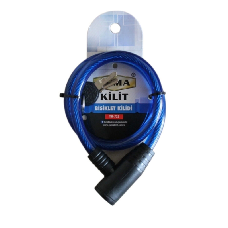 Yuma Bisiklet Kilidi 65cm - Ym733 - Mavi YM 733 Boy: 65 cm Çap: 12 mm İçi çelik dışı vinil kaplama kablo. İki anahtarla gelen kilit sistemi.