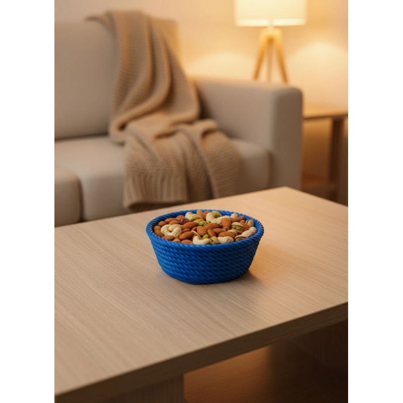 Yuvarlak Çerezlik Lacivert 4×12 cm ölçüsüyle salon, mutfak ve sehpa üstü kullanımlar için ideal bir dekoratif sunum ürünüdür. Kompakt boyutu sayesinde fazla yer kaplamadan çerez, kuru yemiş, draje ve küçük atıştırmalıkların şık şekilde servis edilmesini sağlar. Lacivert rengi bulunduğu ortama modern ve zarif bir dokunuş katar.Örgü dokulu dış yüzeyi ürüne hem es hem de dekoratif bir karakter kazandırır. Günlük kullanımda olduğu kadar misafir sunumlarında da tercih edilebilir. Salon sehpaları, orta masa, yan sehpa ve raf üstlerinde rahatlıkla konumlandırılabilir. Hafif yapısı sayesinde kolay taşınır ve farklı alanlarda pratik kullanım sunar.Çerez, fındık, badem, leblebi gibi kuru yemişlerin yanı sıra şekerleme ve lokum sunumlarında da kullanılabilir. Modern, bohem ve sade dekorasyon tarzlarıyla uyum sağlar. Lacivert rengi sayesinde açık ve koyu tonlu mobilyalarla dengeli bir görünüm oluşturur.