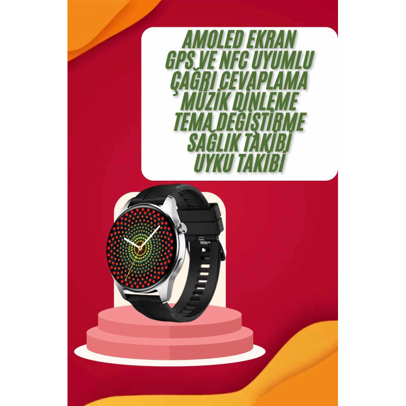 Yuvarlak Kasa 46mm Akıllı Saat Android Ve Ios Uyumlu Uyku Ve Sağlık Takibi