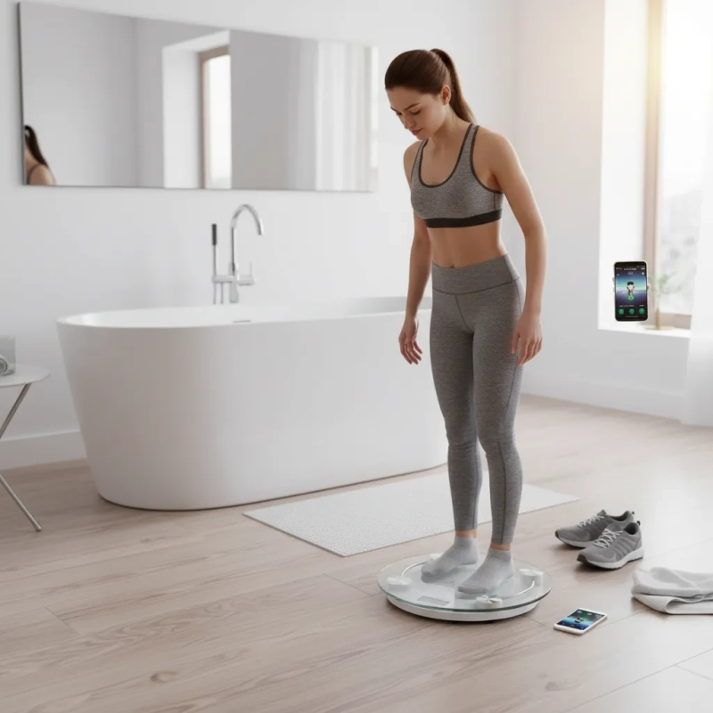 Yuvarlak Şeffaf Dijital Cam Baskül Terazi Tartı Hassas Ölçüm Modern Şık Tasarım