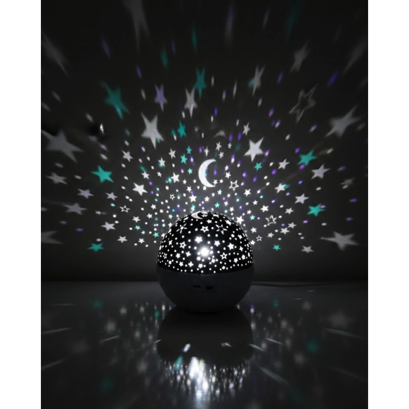Fişe takılarak çalışan yıldız projektör gece lambası, pratik ve güvenli kullanım avantajı sunar. Yıldız yansımaları, özellikle çocukların uykuya geçiş sürecini kolaylaştırır ve rahatlatıcı bir ortam oluşturur.Ayarlanabilir ışık seçenekleri ve müzik hoparlörü sayesinde çok yönlü kullanım imkânı sağlar. 30 dakikalık otomatik kapanma fonksiyonu, gece kullanımında ekstra konfor sunar.